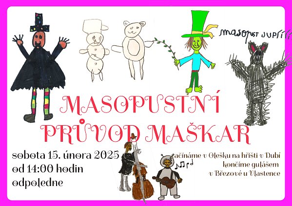 Sraz maškar je v sobotu 15. února 2025 ve 14:00 na hřišti v Dubí.